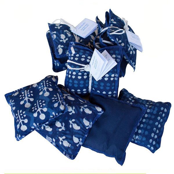 Set of 3 sachets of traditional anti-insect herbs, each with a loop for easy hanging in your pantry and cupboards. Contains cloves, wormwood, lavender, rosemary & essential oils. Sewn in traditionally dyed indigo fabrics from Rajastan.